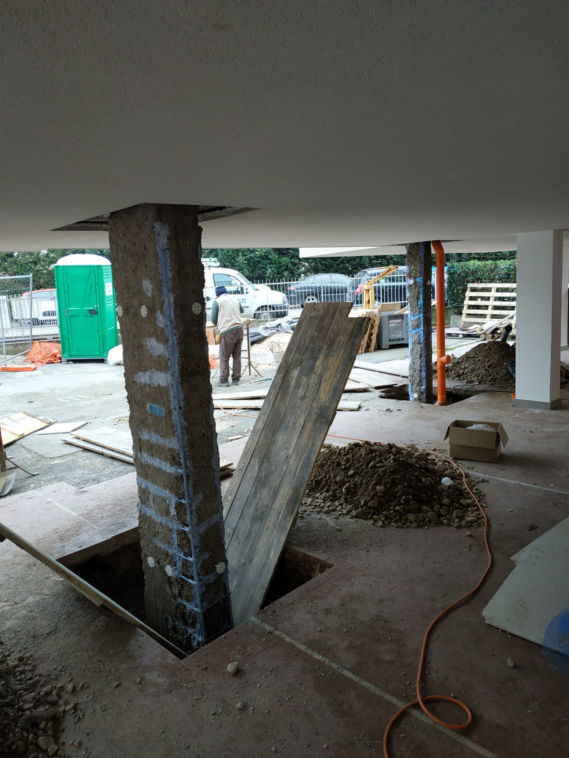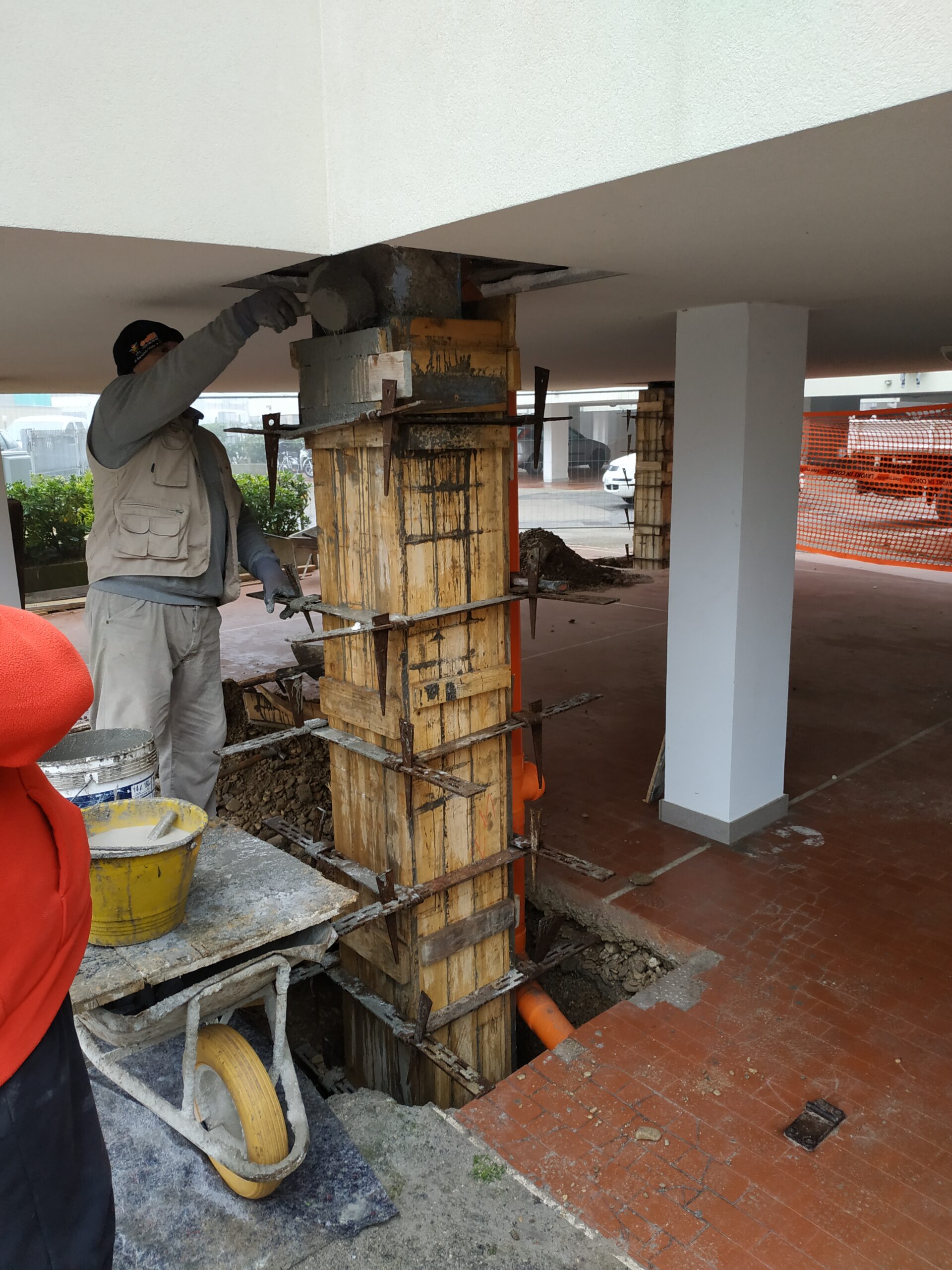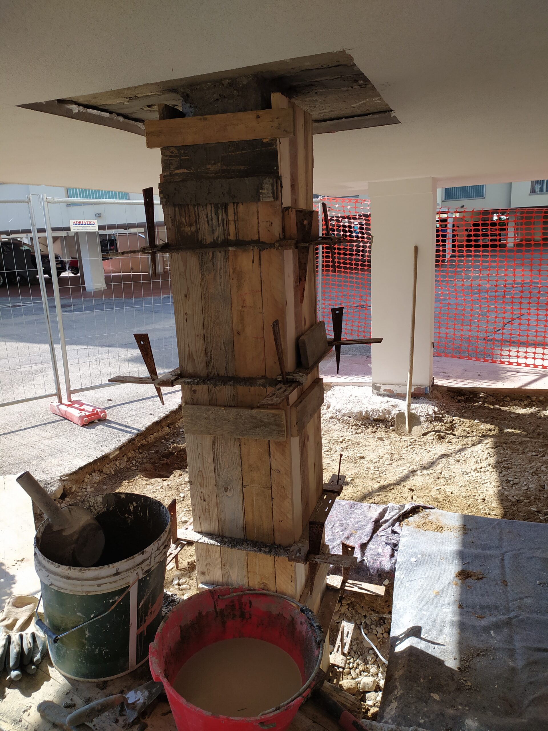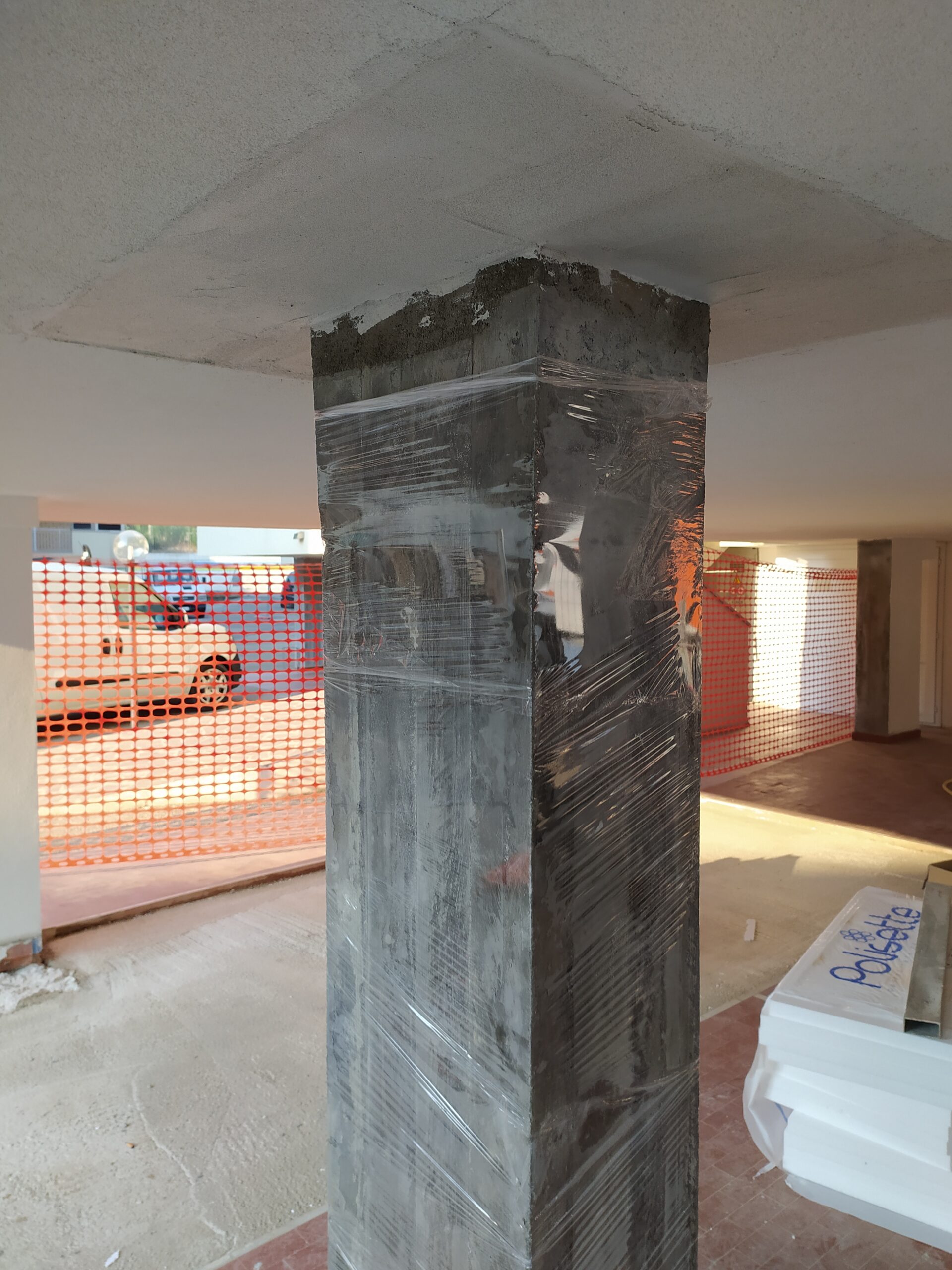 L’intervento di rinforzo in oggetto riguarda l’incamiciatura di pilastri mediante colaggio in cassero di microcalcestruzzo BETONCOL HPC 90.